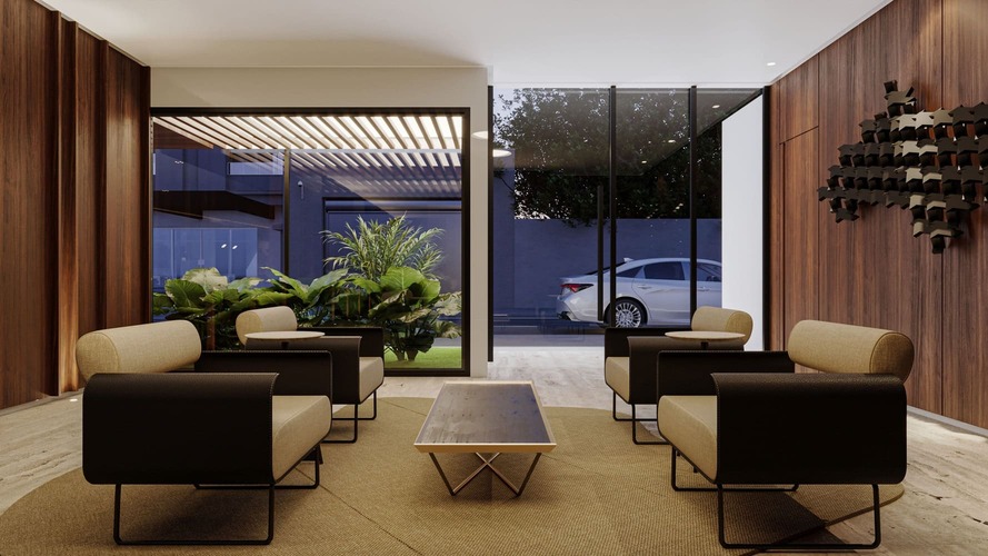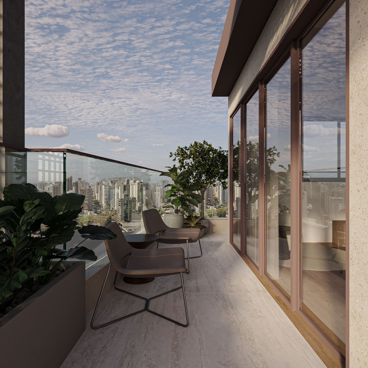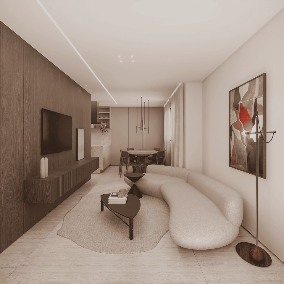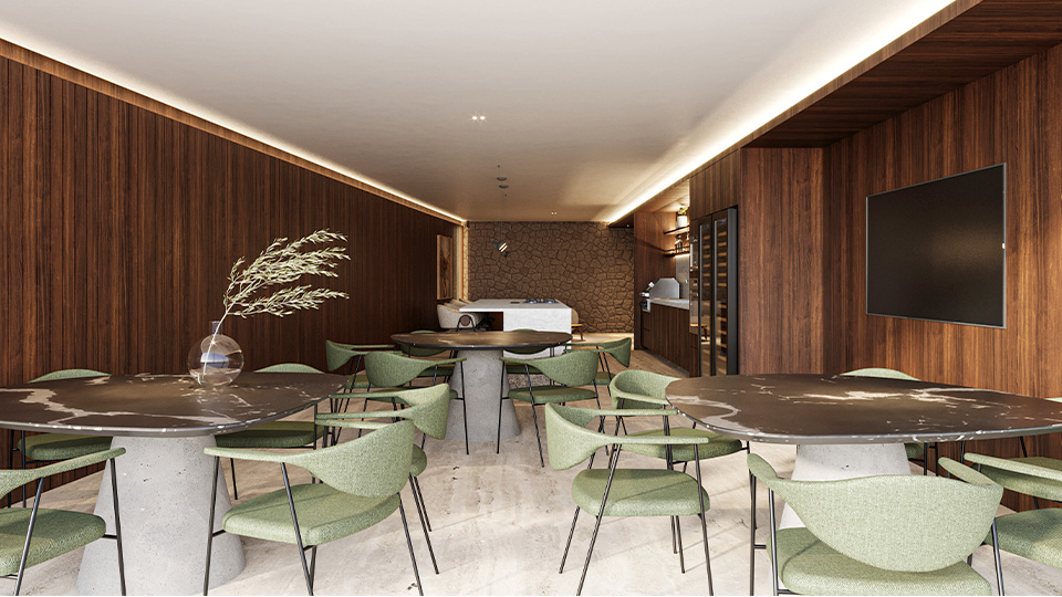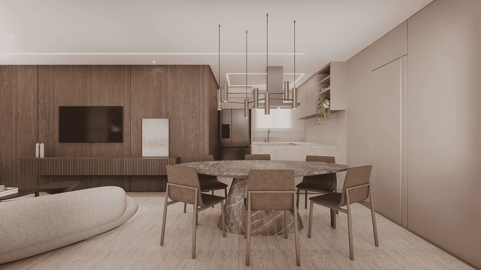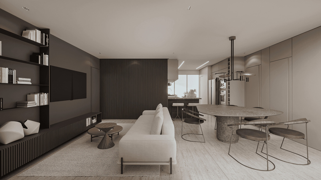 Ambiente de alto padrão que inspira bem-estar, calma e conforto.