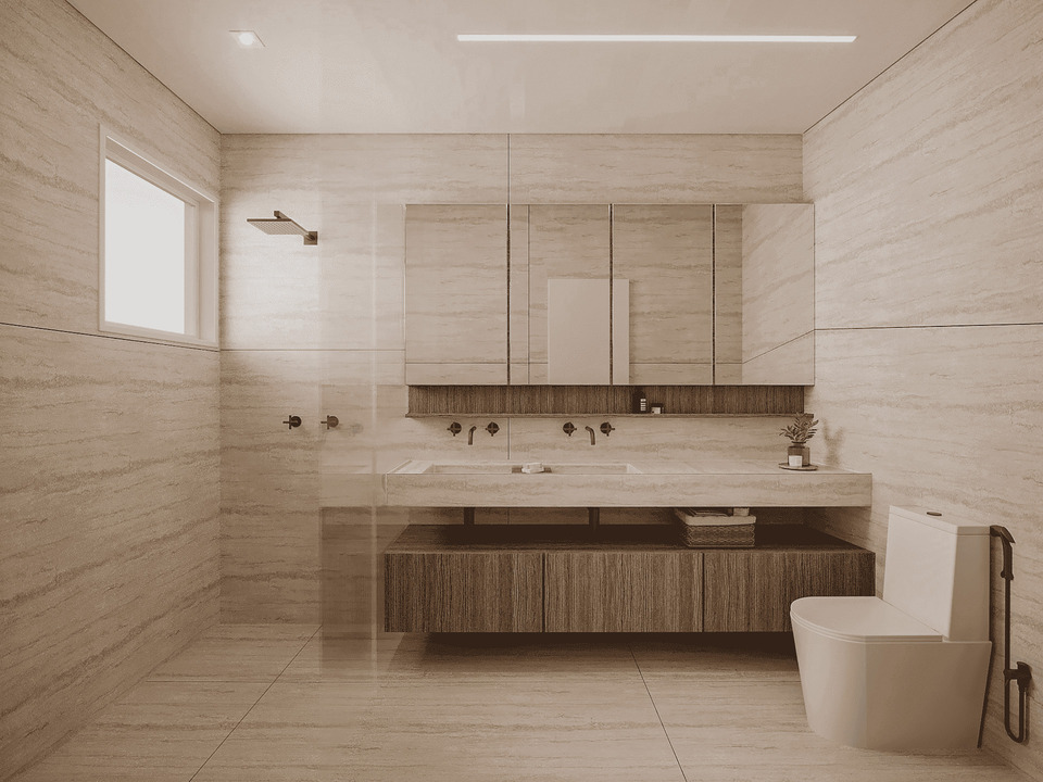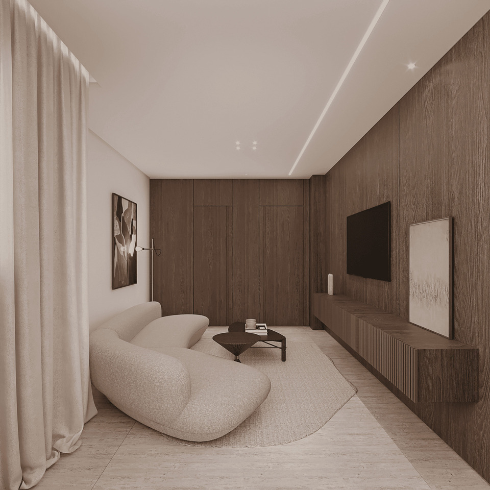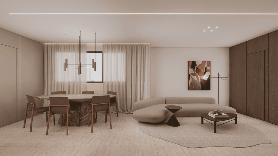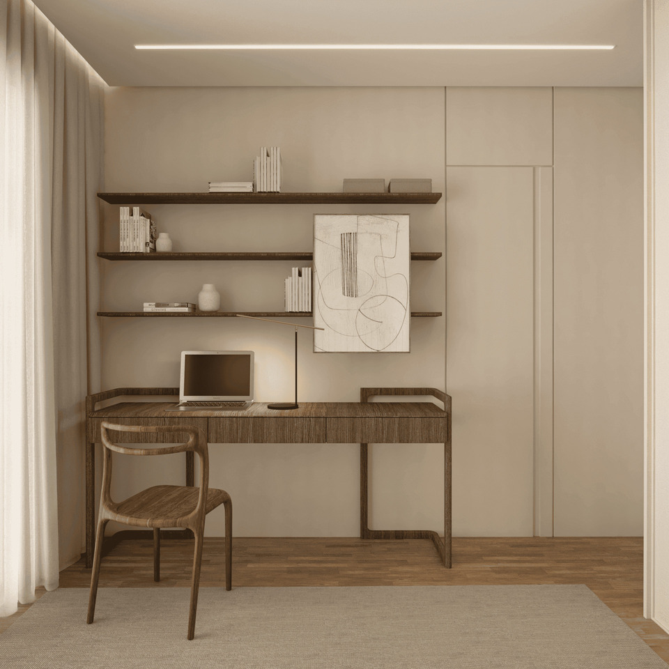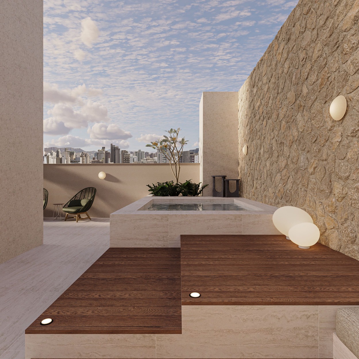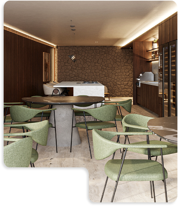 Ambiente de alto padrão que inspira bem-estar, calma e conforto.