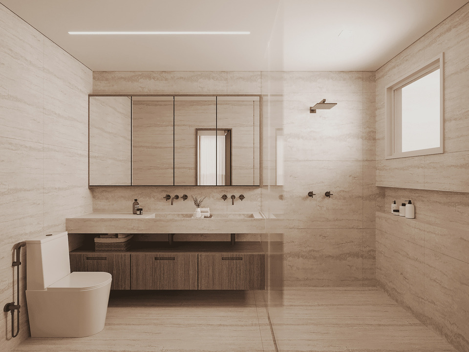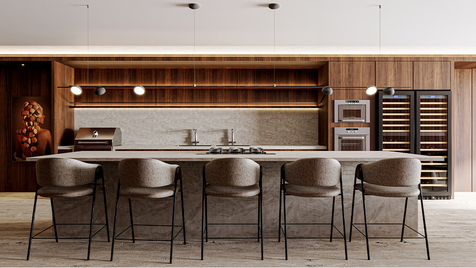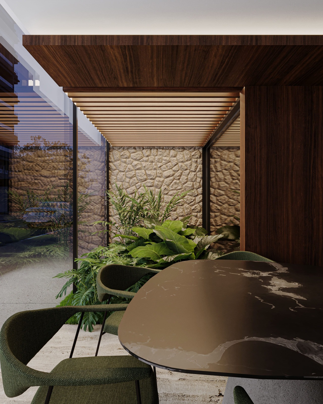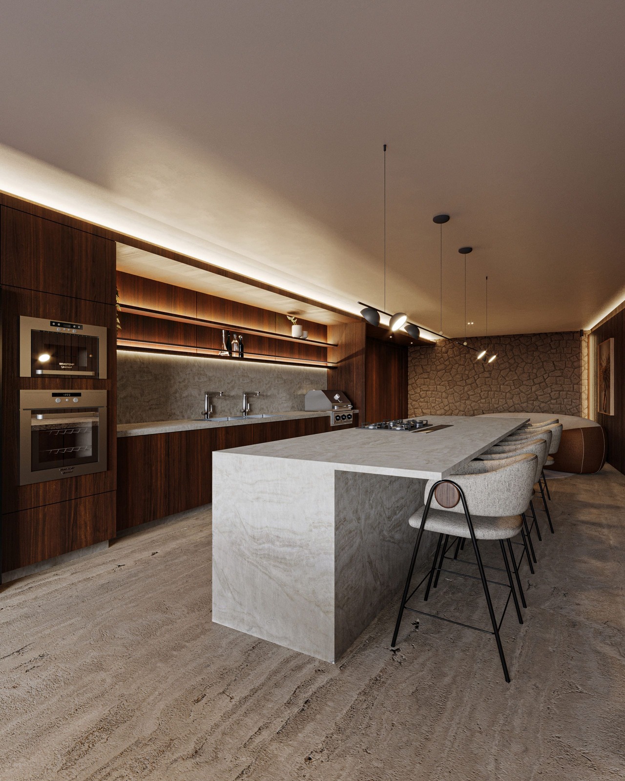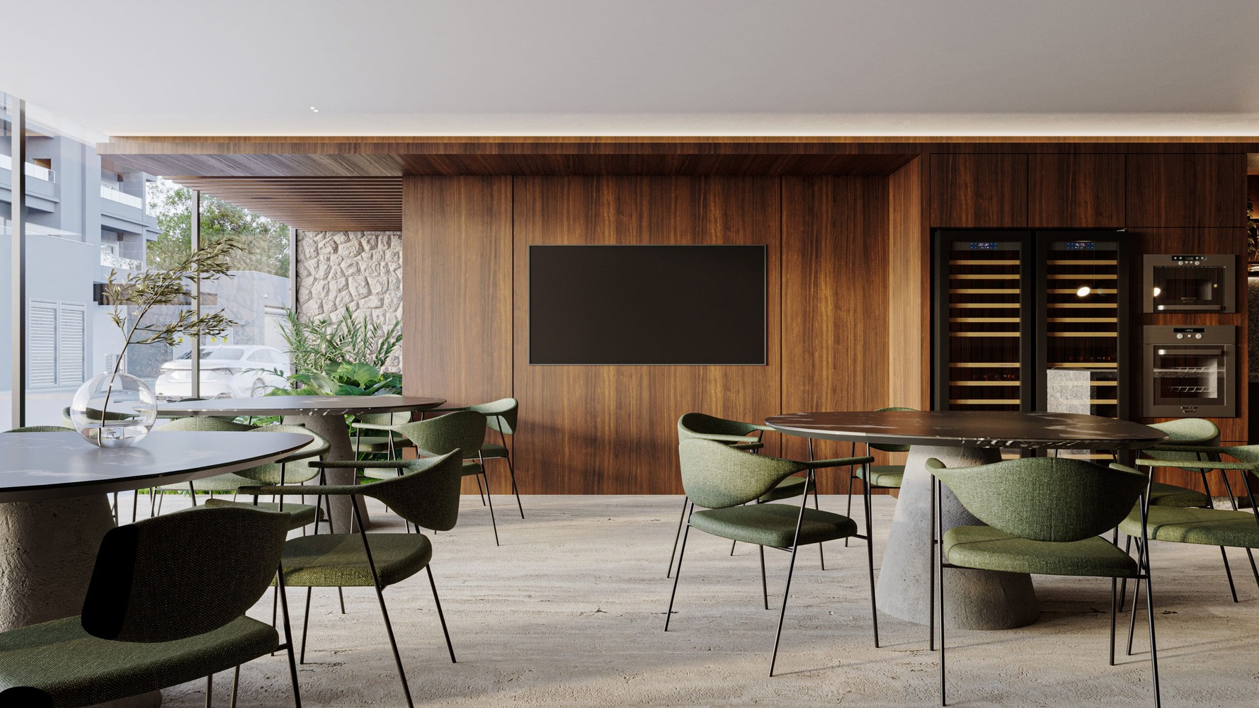 Ambiente de alto padrão que inspira bem-estar, calma e conforto.