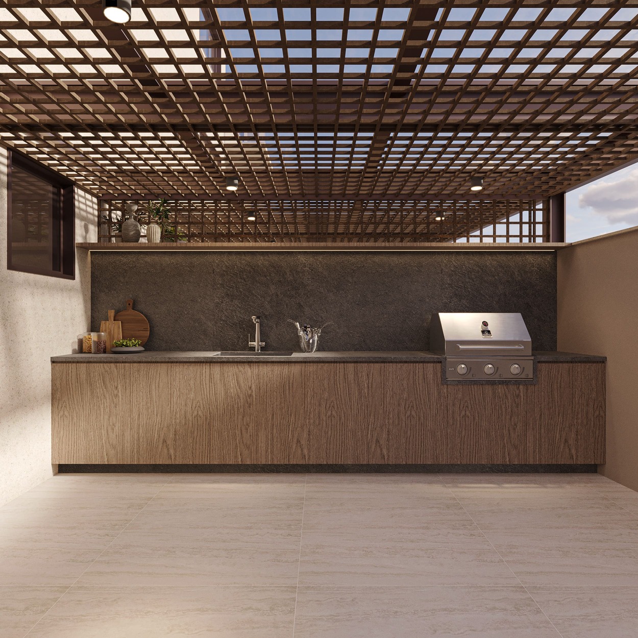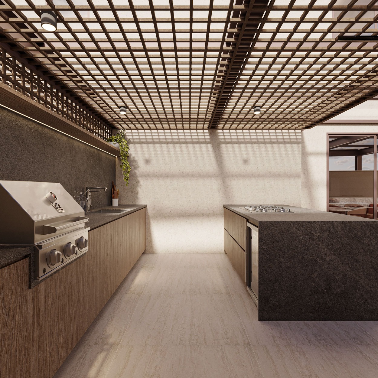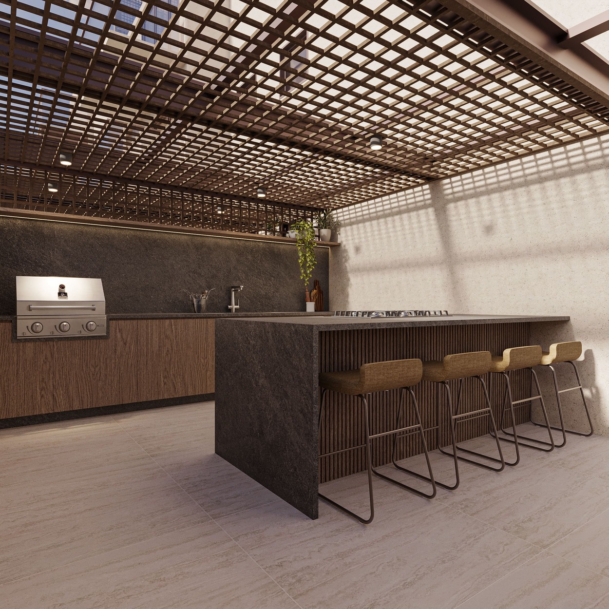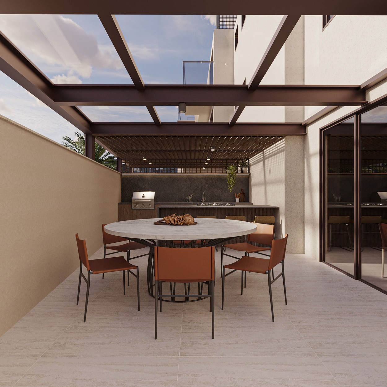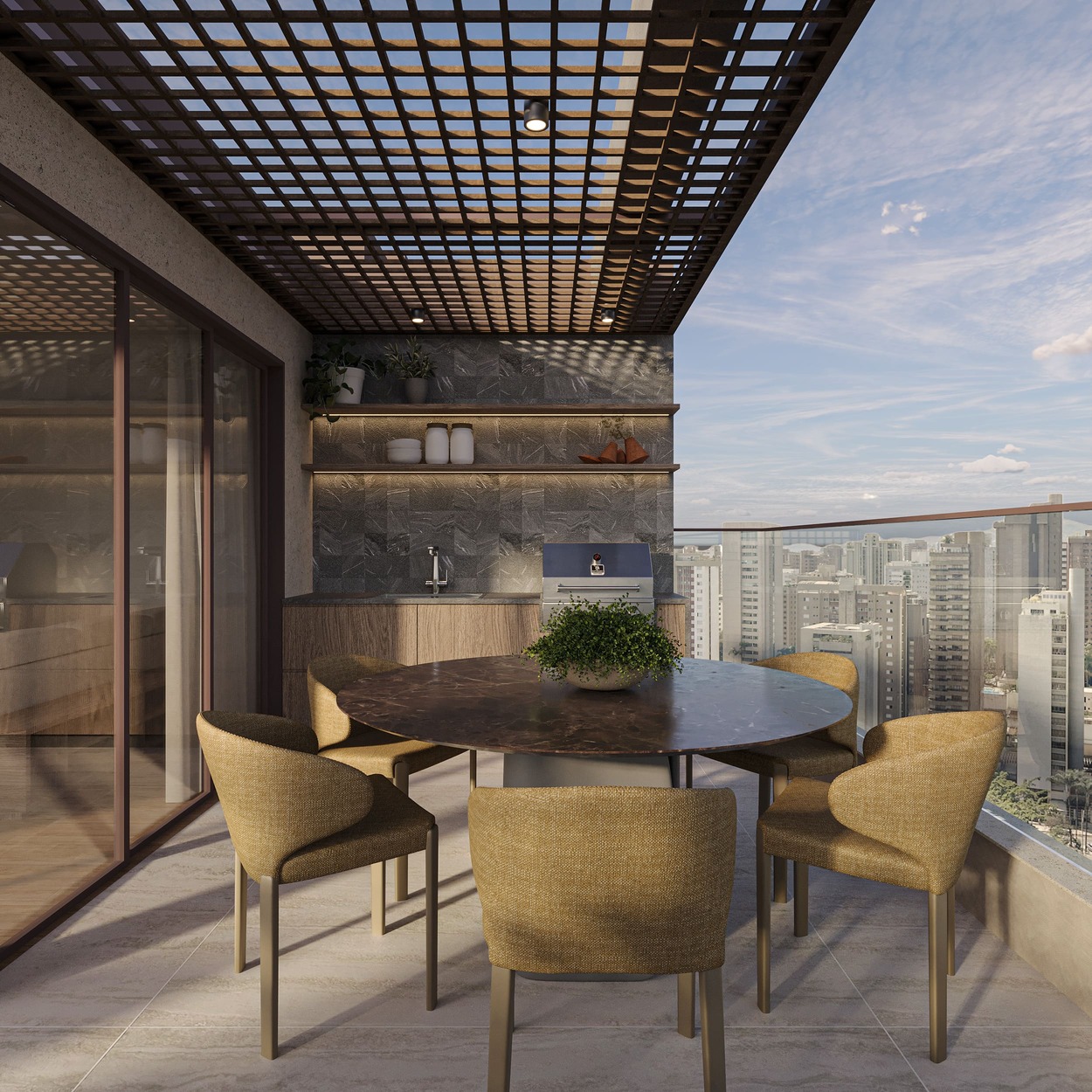 Equipado com churrasqueira a gás, cervejeira e ilha de preparo.